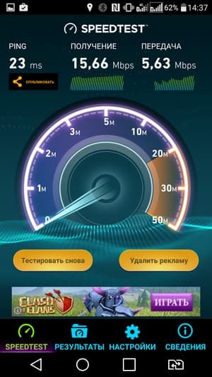 Смартфон стандартно работает в современных сетях 2G GSM и 3G WCDMA, а также имеет поддержку LTE-A Cat.4. Правда, среди поддерживаемых диапазонов LTE FDD (1800, 2100, 2600 МГц) нет диапазона Band 20 (800 МГц), входящего в тройку самых распространенных у отечественных операторов диапазонов 4G. В принципе, это может негативно сказаться на качестве приема сети внутри помещений. По крайней мере, при тестовых проверках LG V10 неожиданно показал более слабые результаты по скорости передачи данных на том же самом месте, где большинство сертифицированных аппаратов с полной поддержкой частот чувствуют себя уверенно и демонстрируют хорошие скорости передачи данных в 4G.