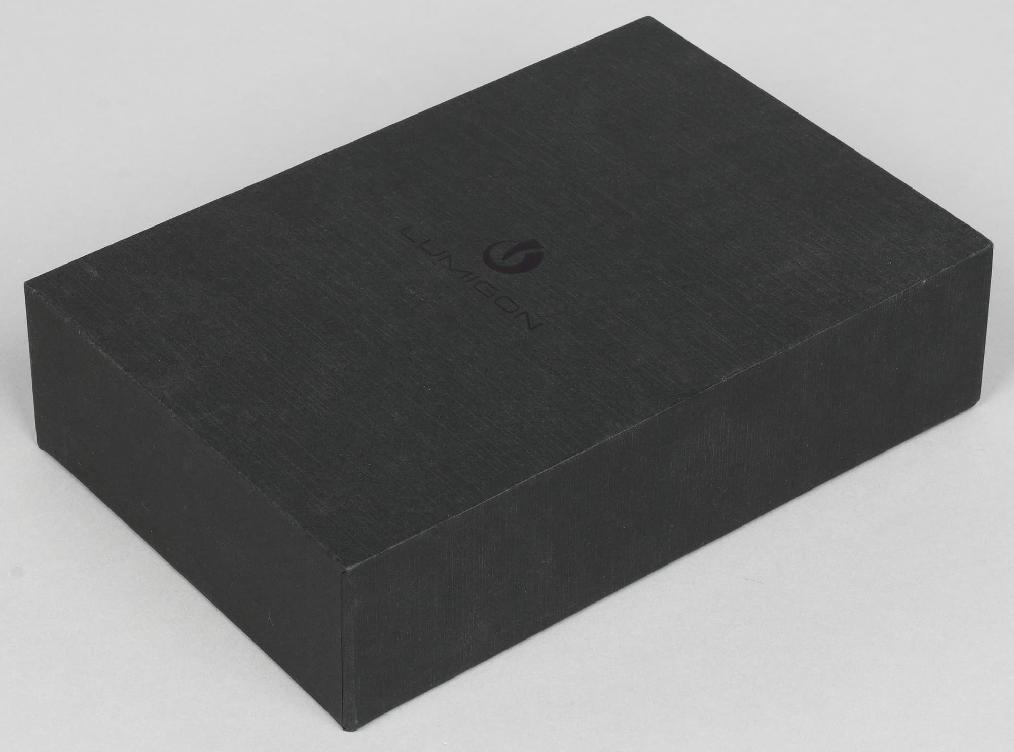 Упаковка у Lumigon T3, как того и требует премиальный уровень, стильно оформлена и аккуратно выполнена из твердого матового черного картона с текстурированностью под ткань, с единственным выдавленным на верхней крышке логотипом, без каких-либо надписей и картинок. Внутри все также аккуратно разложено по отдельным ячейкам на бархатистых подносиках. В целом знакомство с упаковкой смартфона оставило приятные впечатления.