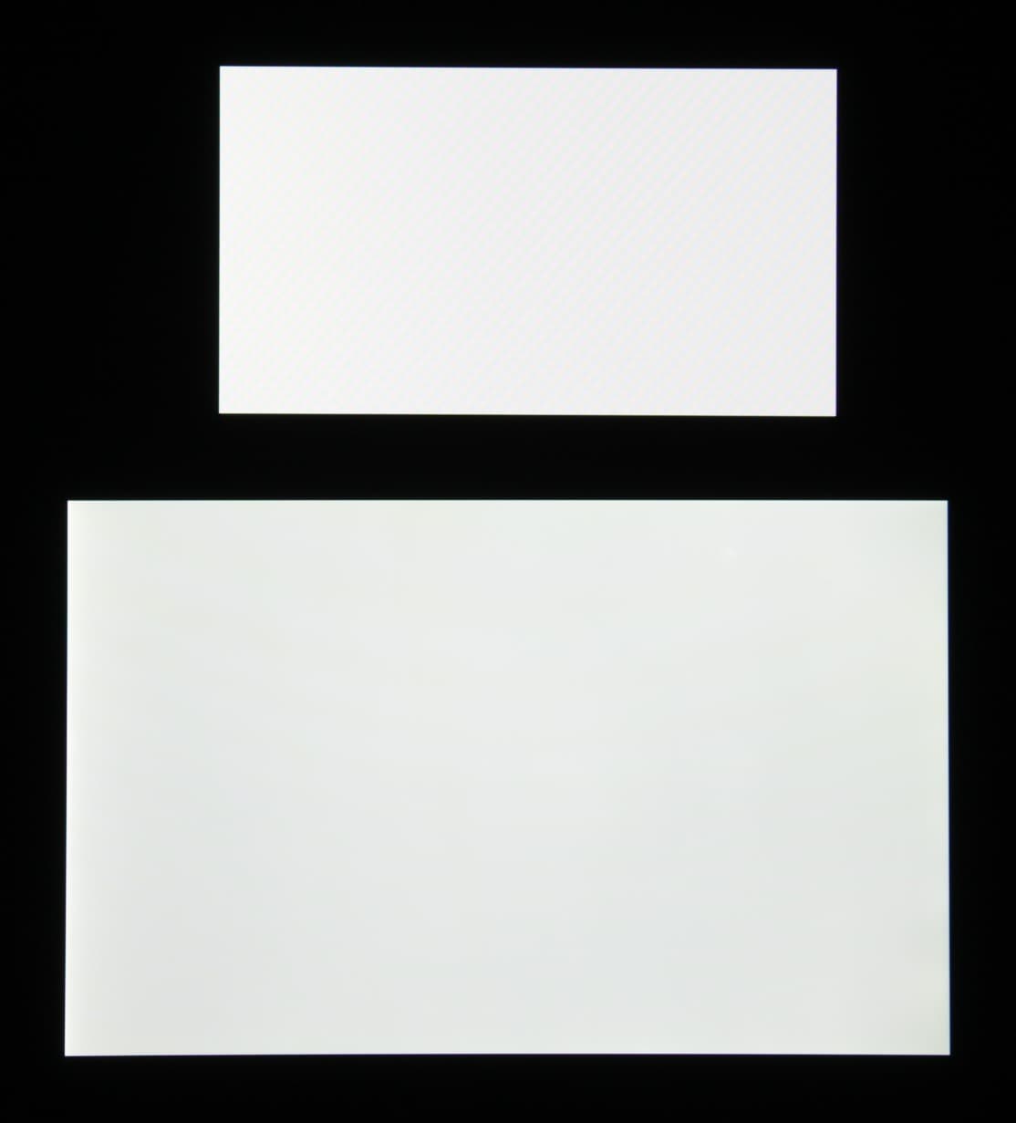 Экран характеризуется великолепными углами обзора. Правда, белый цвет при отклонении даже на небольшие углы приобретает легкий сине-зеленый оттенок, но черный цвет остается просто черным под любыми углами. Он настолько черный, что параметр контрастности в данном случае просто неприменим. При перпендикулярном взгляде равномерность белого поля хорошая. Для сравнения приведем фотографии, на которых на экраны Lumigon T3 и второго участника сравнения выведены одинаковые изображения, при этом яркость экранов изначально установлена примерно на 200 кд/м², а цветовой баланс на фотоаппарате принудительно переключен на 6500 К.