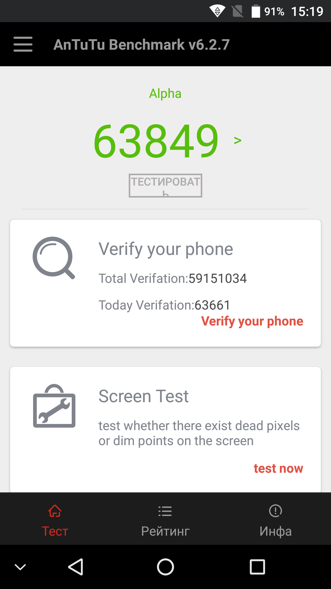 | AnTuTu (v6.x) (больше — лучше) | 63849 | 63361 | 50597 | 60485 | 45287 |