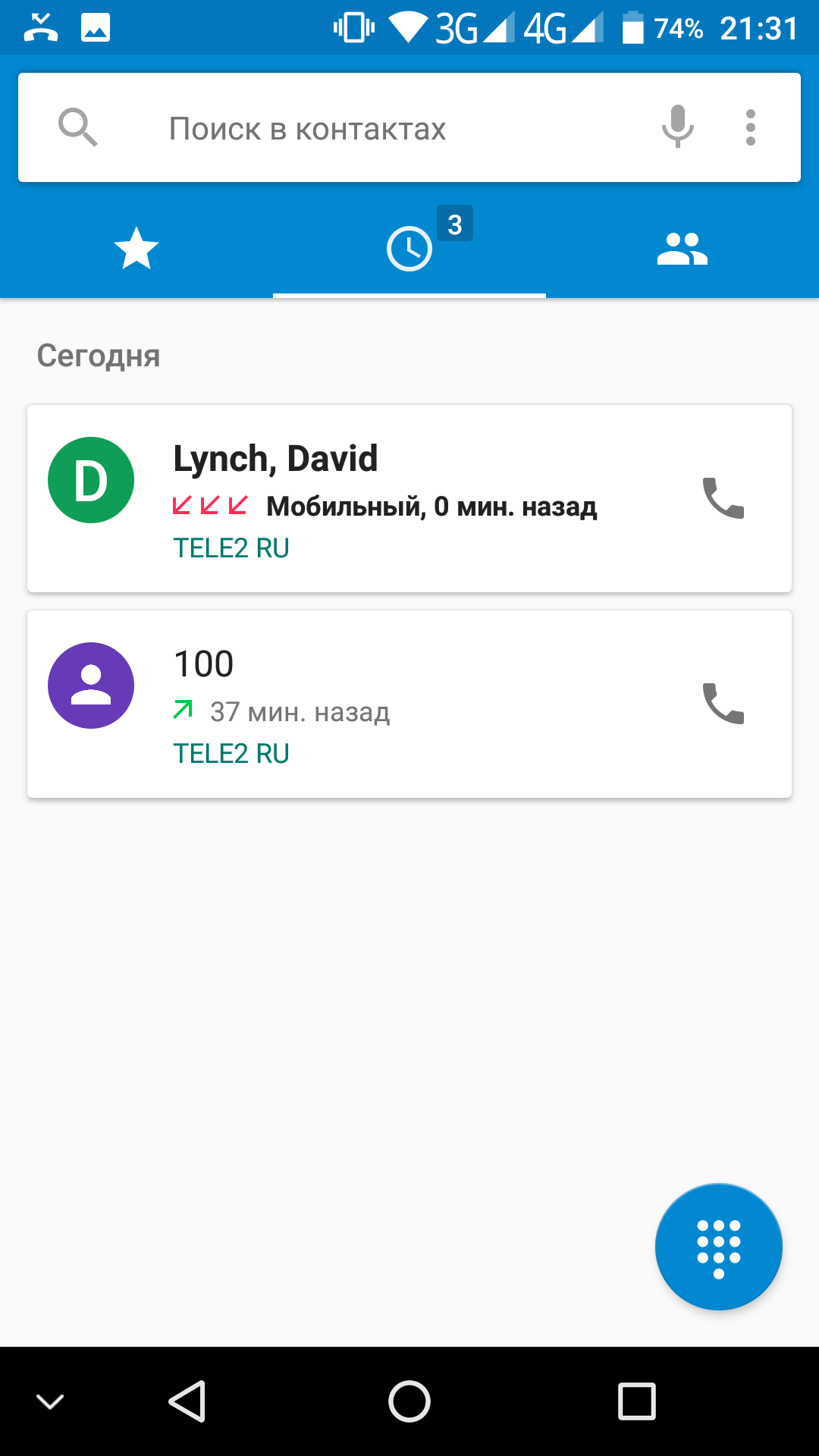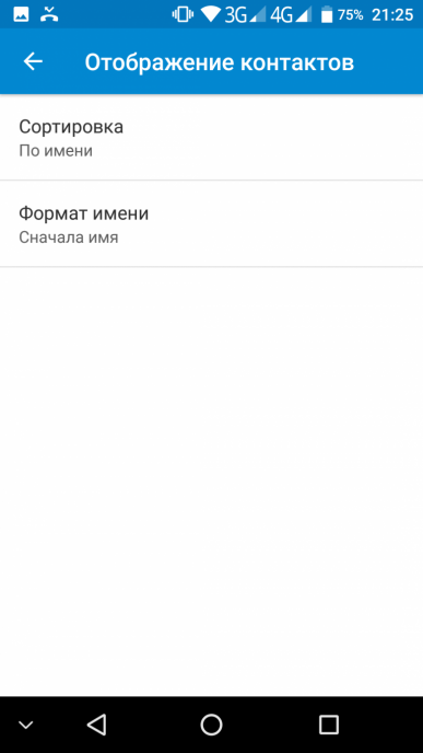 Телефонное приложение поддерживает Smart Dial, то есть во время набора телефонного номера сразу осуществляется и поиск по первым буквам в контактах. Способы сортировки и отображения контактов стандартны для интерфейса Android (сортировка контактов возможна по фамилии или имени, то же самое и с отображением данных звонящего).