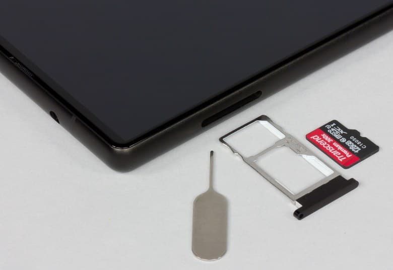 Разъем для карточек, расположенный на левой грани, гибридный: в один из слотов вставляется карта Nano-SIM, в другой — карта памяти или вторая SIM-карта формата Nano-SIM.