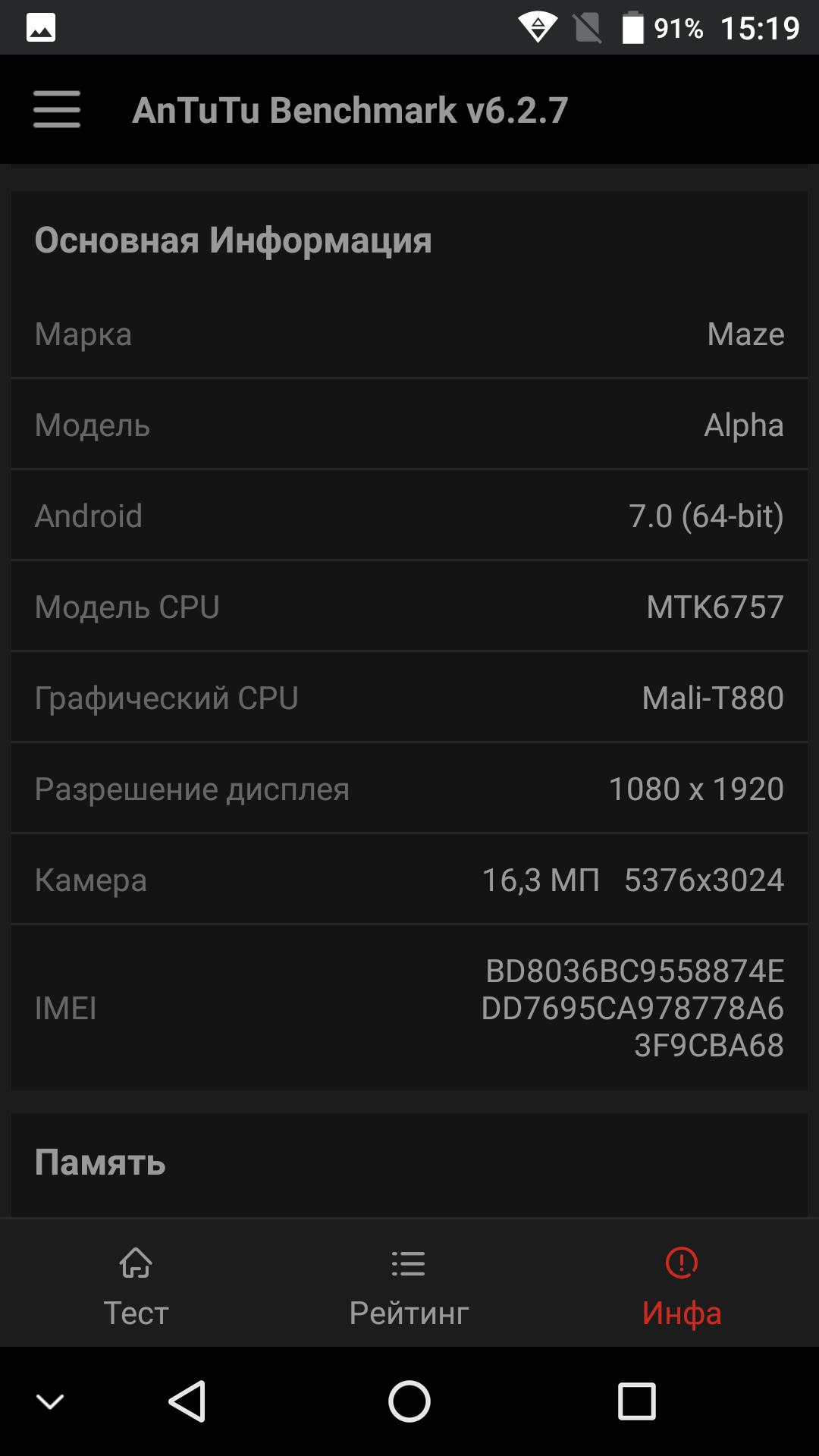 Несъемная аккумуляторная батарея, установленная в Maze Alpha, имеет большую емкость в 4000 мА·ч. С этой батареей герой обзора демонстрирует высокие результаты в тестах автономности. Выносливым аппарат показал себя во всех режимах, никаких провалов нет, работа стабильна, все без обмана. В реальной жизни Maze Alpha ведет себя так же, как большинство современных смартфонов: уверенно доживает до вечерней зарядки, а при щадящем режиме эксплуатации может, в принципе, протянуть и два дня.