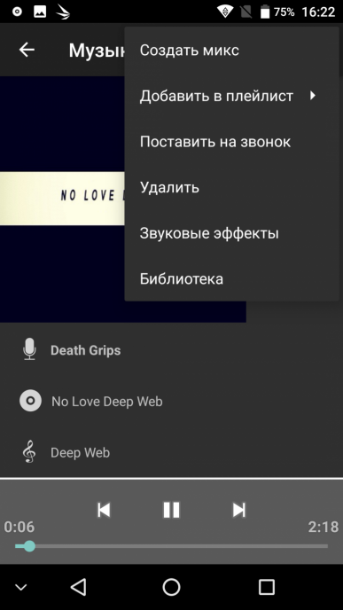 Для прослушивания музыки используется все тот же знакомый аудиопроигрыватель, поставляемый со всеми смартфонами на MediaTek, у которых нет собственного фирменного интерфейса и программ. Это простенькое приложение с набором предустановленных значений эквалайзера и функцией усиления громкости. Звучит смартфон и в наушниках, и в динамике простенько, блекло, звук ненасыщенный и неяркий, запас громкости невелик.