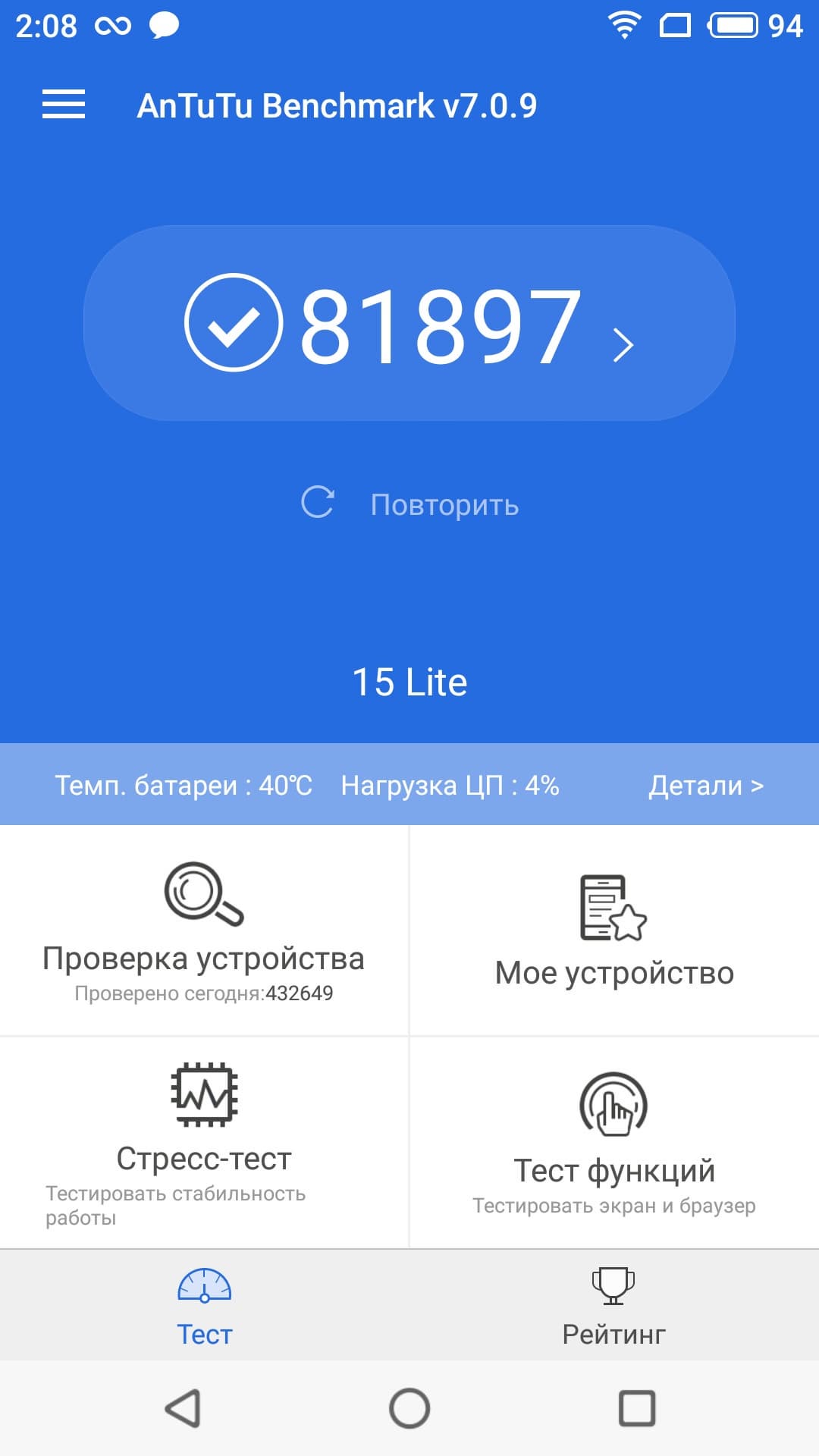 Что касается технических характеристик, то они у героя обзора далеко не топовые, но на таком уровне, чтобы смартфон в полной мере мог обеспечивать своему владельцу комфортную работу и быстрое выполнение всех поставленных задач. Да, это не игровое и не мультимедийное решение, но от Meizu 15 Lite это и не требуется. Своих денег аппарат уж точно достоин, и это главное.