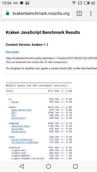 Что касается бенчмарков для оценки скорости движка javascript, то стоит всегда делать скидку на то, что в них результаты существенно зависят от браузера, в котором запускаются, так что сравнение может быть истинно корректным только на одинаковых ОС и браузерах, а такая возможность имеется при тестировании не всегда. В случае с ОС Android мы всегда стараемся использовать Google Chrome.