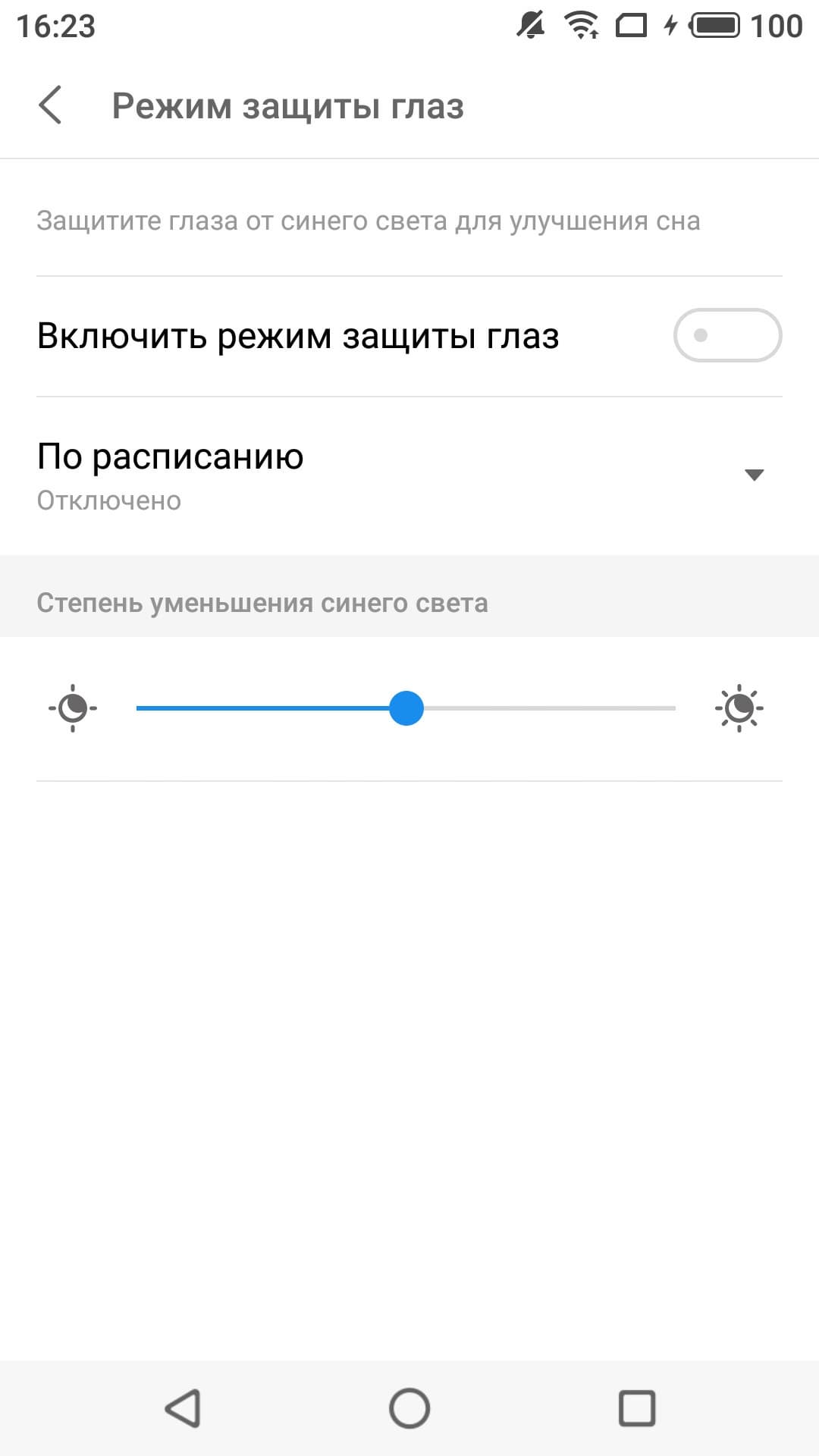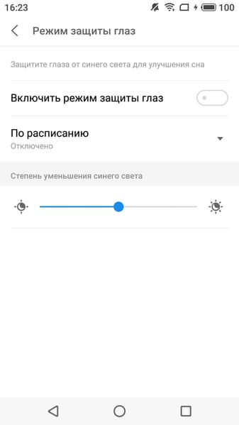 Присутствует настройка, позволяющая снизить интенсивность синей компоненты.
