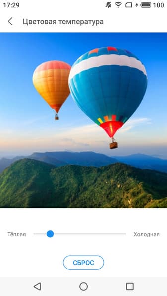 В этом устройстве есть возможность скорректировать цветовой баланс с помощью регулировки оттенка.