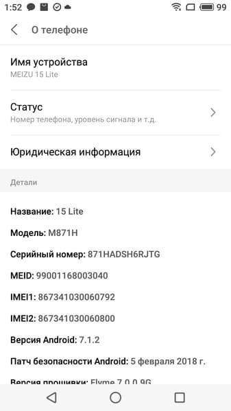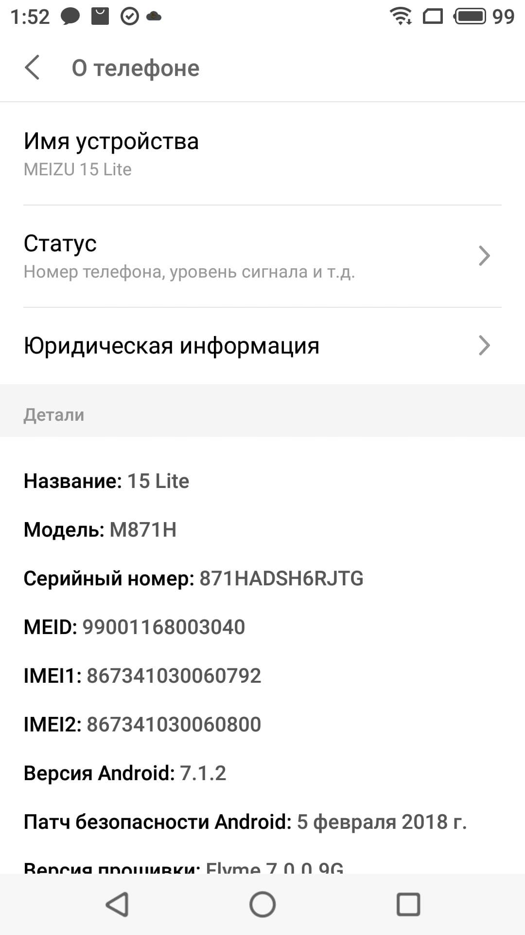 Основные характеристики Meizu 15 Lite (модель M871H)