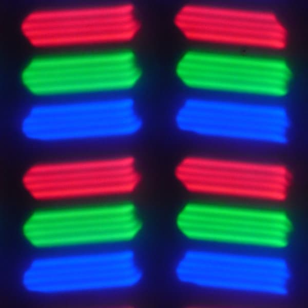В данном смартфоне используется матрица типа IPS. Микрофотографии демонстрируют типичную для IPS структуру субпикселей: