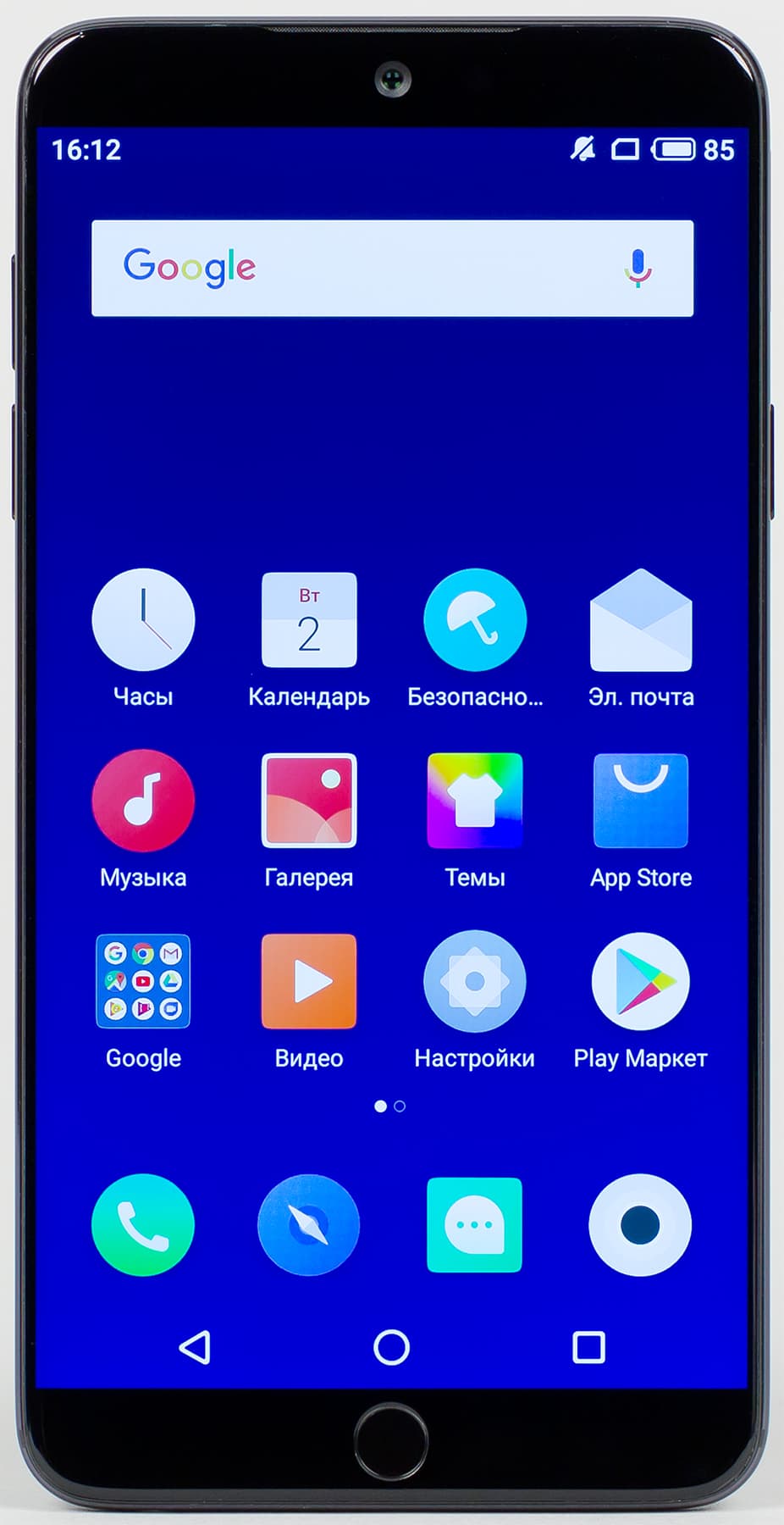 У корпуса чрезвычайно тонкие фрагменты рамки по бокам от экрана, поэтому экран занял целых 83,4% всей фронтальной поверхности. В отличие от точно такого же по размеру и форме Meizu 15, здесь поверхность корпуса еще и более практичная, матовая. Она и в пальцах не так скользит, и не такая маркая, как у Meizu 15.