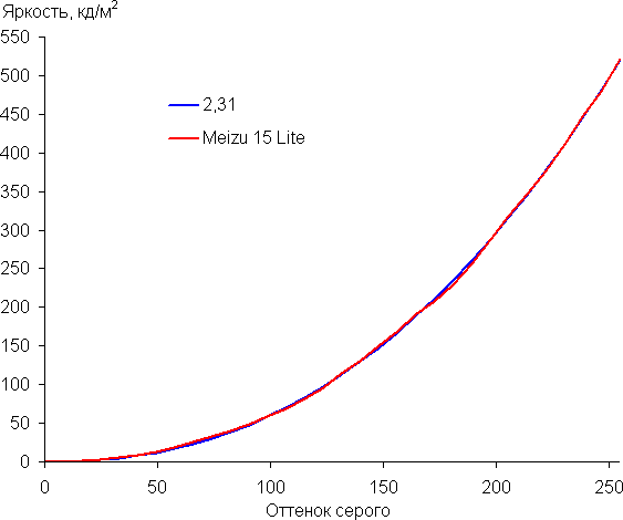 Контрастность (примерно в центре экрана) высокая — порядка 1050:1. Время отклика при переходе черный-белый-черный равно 25 мс (14 мс вкл. + 11 мс выкл.). Переход между полутонами серого 25% и 75% (по численному значению цвета) и обратно в сумме занимает 45 мс. Построенная по 32 точкам с равным интервалом по численному значению оттенка серого гамма-кривая не выявила завала ни в светах, ни в тенях. Показатель аппроксимирующей степенной функции равен 2,31, что немного выше стандартного значения 2,2. При этом реальная гамма-кривая слегка отклоняется от степенной зависимости: