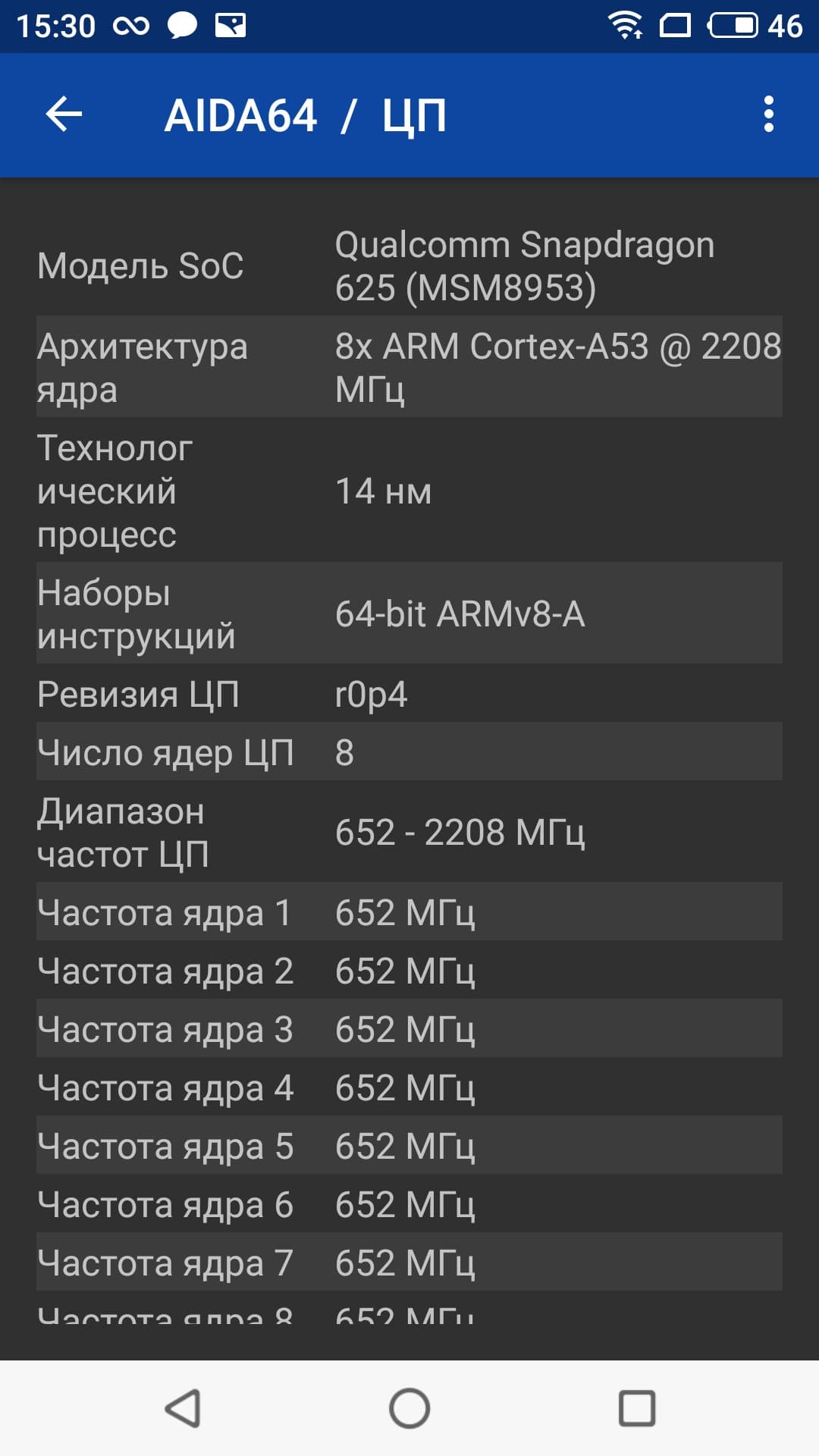 - SoC Qualcomm Snapdragon 626, 8 ядер ARM Cortex-A53 @2,2 ГГц