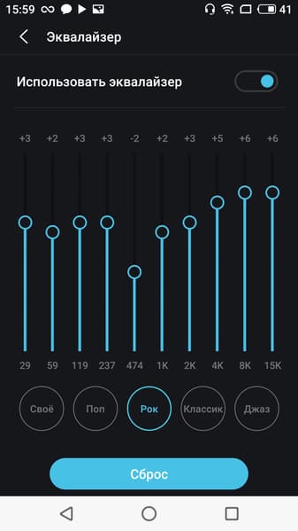 Для проигрывания музыки используется собственный проигрыватель, и звучит смартфон, благодаря аудиочипу Cirrus Logic CS47L33 с усилителем SmarPA Cirrus Logic CS35L35, вполне достойно, как в наушниках, так и через громкоговоритель. Собственная система улучшения звучания Square Sound предоставляет набор ручных настроек, в том числе и десятиполосный эквалайзер. Радио нет, диктофон демонстрирует высокую чувствительность и хорошее качество записи.