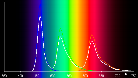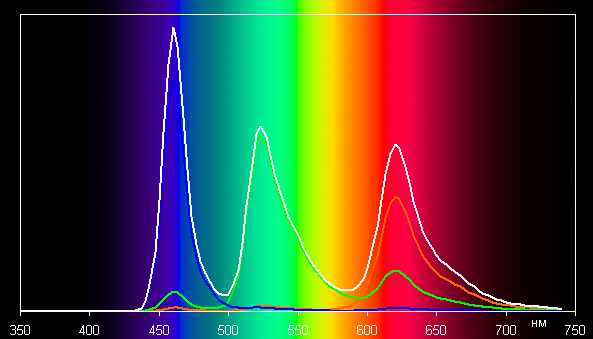 Без коррекции (профиль Dynamic) спектры компонент очень хорошо разделены:
