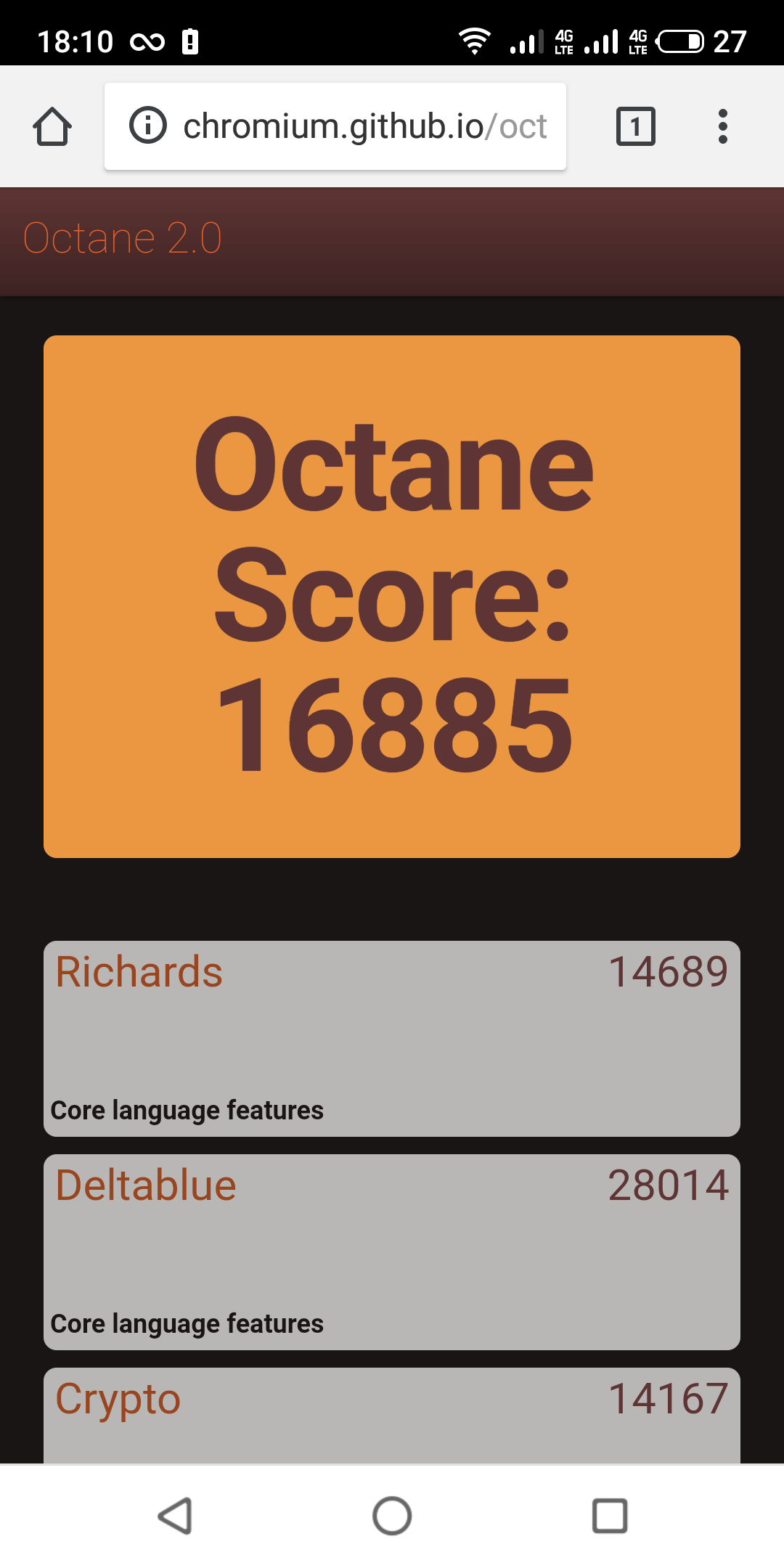 | Google Octane 2 (больше — лучше) | 16885 | 9311 | 15042 | 8341 |