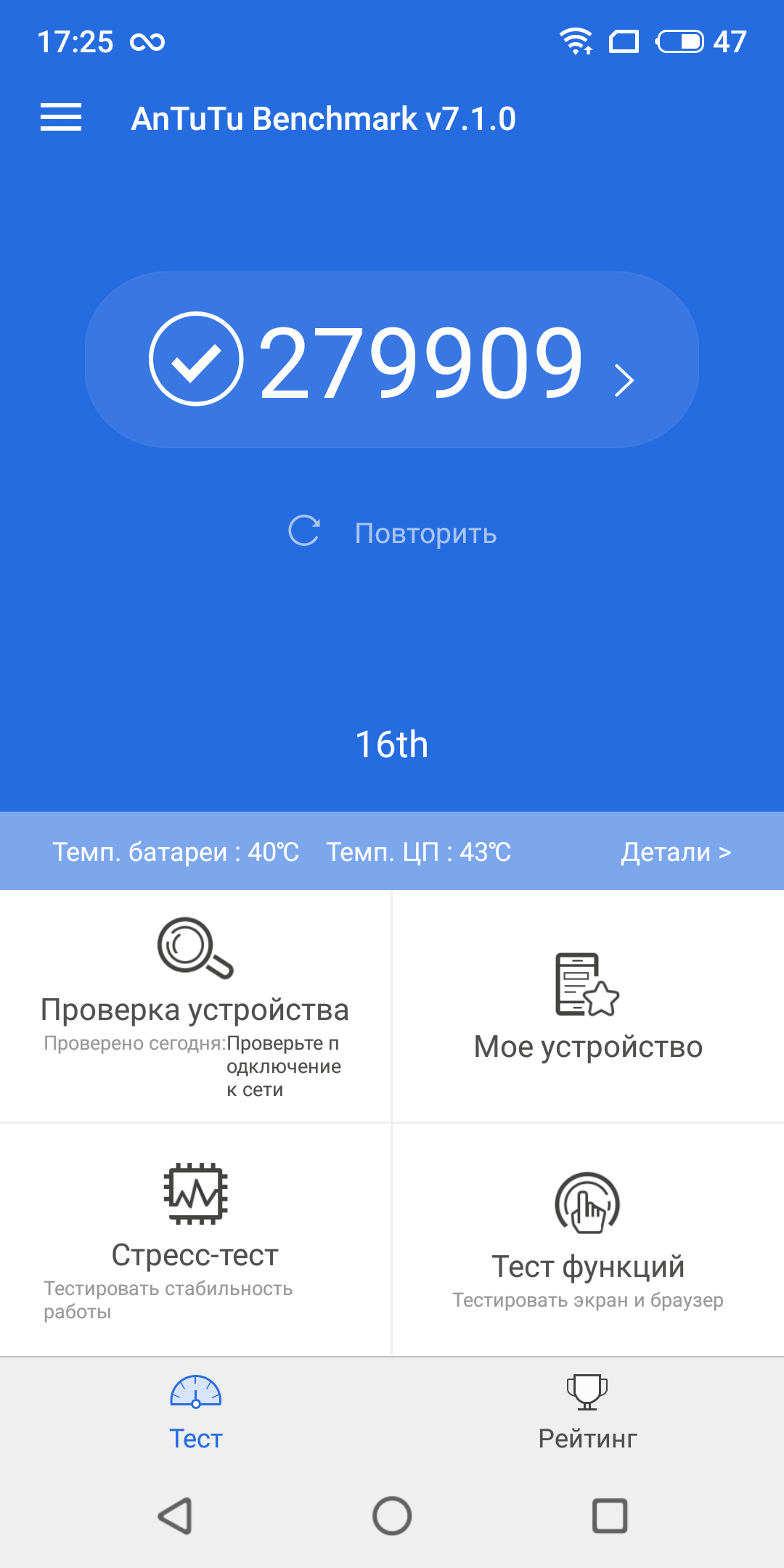| AnTuTu (v7.x) (больше — лучше) | 279909 | 209585 | 243281 | 143077 |
