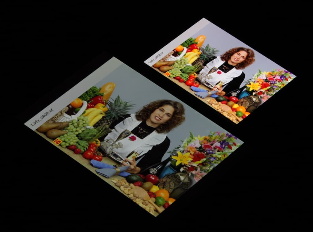Отметим, что на экранах с широким цветовым охватом (без соответствующей коррекции) цвета́ обычных изображений, оптимизированных для устройств sRGB, выглядят неестественно насыщенными. Отсюда и рекомендация: в большинстве случаев смотреть кино, фотографии и все естественное лучше при выборе профиля Стандартный режим, и только если фотография сделана на установке Adobe RGB, имеет смысл переключить профиль на Фото. Аналогично, профиль Адаптивный режим уместен при просмотре видеоматериала с охватом DCI-P3, принятым в цифровом кинематографе.