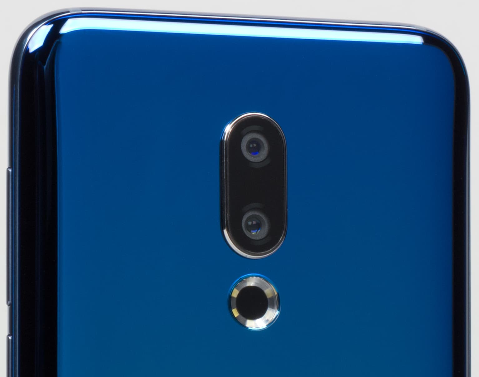 Meizu 16th в целом похож по форме и дизайну на предыдущие юбилейные «пятнашки», но из-за блестящих глянцевых поверхностей сильно отличается по восприятию. «Блестит» здесь все: и стеклянная задняя крышка с зеркальной подложкой, и металлическая боковая хромированная рамка — смартфон получился весьма броским.