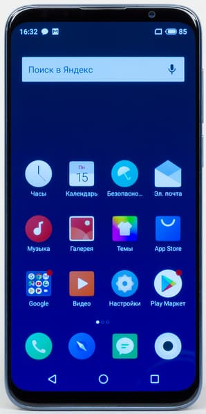 Meizu 16th оснащен Super AMOLED-дисплеем производства Samsung с диагональю 6 дюймов и разрешением 2160×1080, прикрытым 2.5D-стеклом. Физические размеры экрана составляют 68×137 мм, соотношение сторон — 18:9. Рамка вокруг максимально тонкая: приблизительно по 2 мм с боков и по 6 мм сверху и снизу. Экран занимает 91,2% площади всей передней поверхности. Заметим, что производитель умудрился сделать экран без выреза («челки»), при этом как-то уместив над экраном и камеру, и динамик, и необходимые сенсоры.