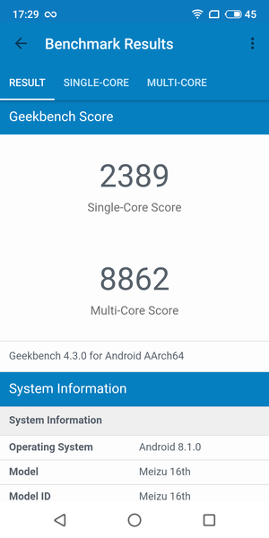 | Meizu 16th (Qualcomm Snapdragon 845) | Huawei P20 Pro (HiSilicon Kirin 970) | Samsung Galaxy Note 9 (Samsung Exynos 9810) | Meizu Pro 7 Plus (MediaTek Helio X30) | |