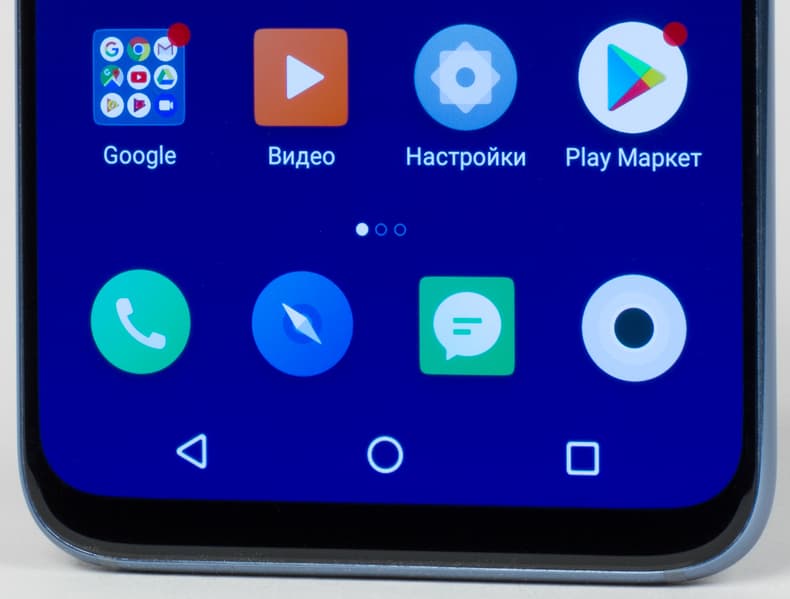 Рамка передней панели вокруг экрана минимизирована до предела, с боков ее вообще трудно разглядеть. Аппаратных кнопок под экраном нет, нет там и сканера отпечатков пальцев, причем все они переместились на экран, и если для навигационных кнопок это давно привычно, то реализация сканера под дисплеем (где «под» подразумевает плоскость экрана) — действительно новация. Когда берешь смартфон в руки, на дисплее загорается овальная пиктограмма в том месте, куда следует прикладывать палец.