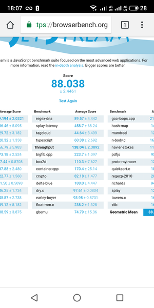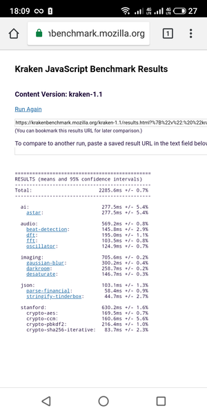 Что касается бенчмарков для оценки скорости движка javascript, то стоит всегда делать скидку на то, что в них результаты существенно зависят от браузера, в котором запускаются, так что сравнение может быть истинно корректным только на одинаковых ОС и браузерах, а такая возможность имеется при тестировании не всегда. В случае с ОС Android мы всегда стараемся использовать Google Chrome.