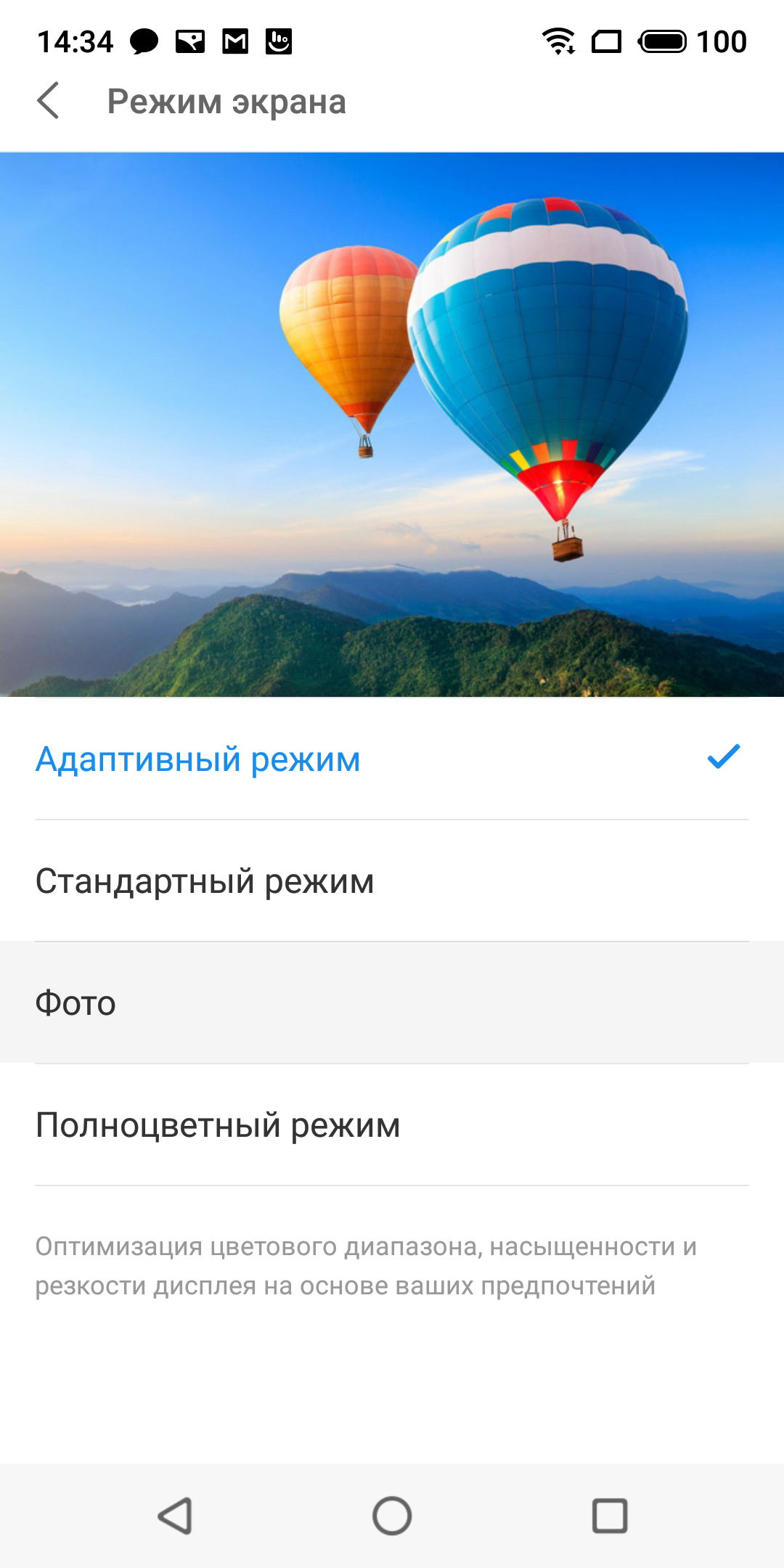 Фотография выше получена после выбора профиля Стандартный режим в настройках экрана, всего их четыре: