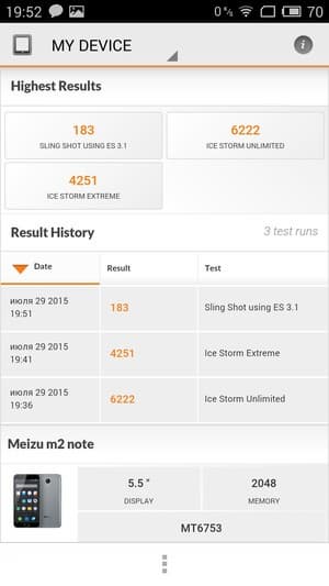 По результатам тестирования, как и следовало ожидать, урезанная по всем параметрам платформа продемонстрировала и результаты более слабые, нежели быстрая и производительная SoC, использовавшаяся в предыдущей модели. Добавить здесь особенно нечего, владельцы Meizu M2 Note могут рассчитывать на более низкие результаты во всех тестах и худшую производительность в играх, чем владельцы Meizu M1 Note.