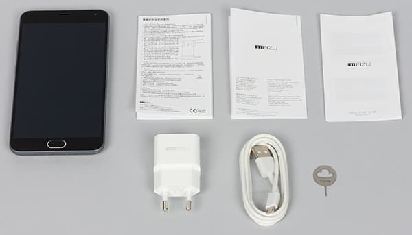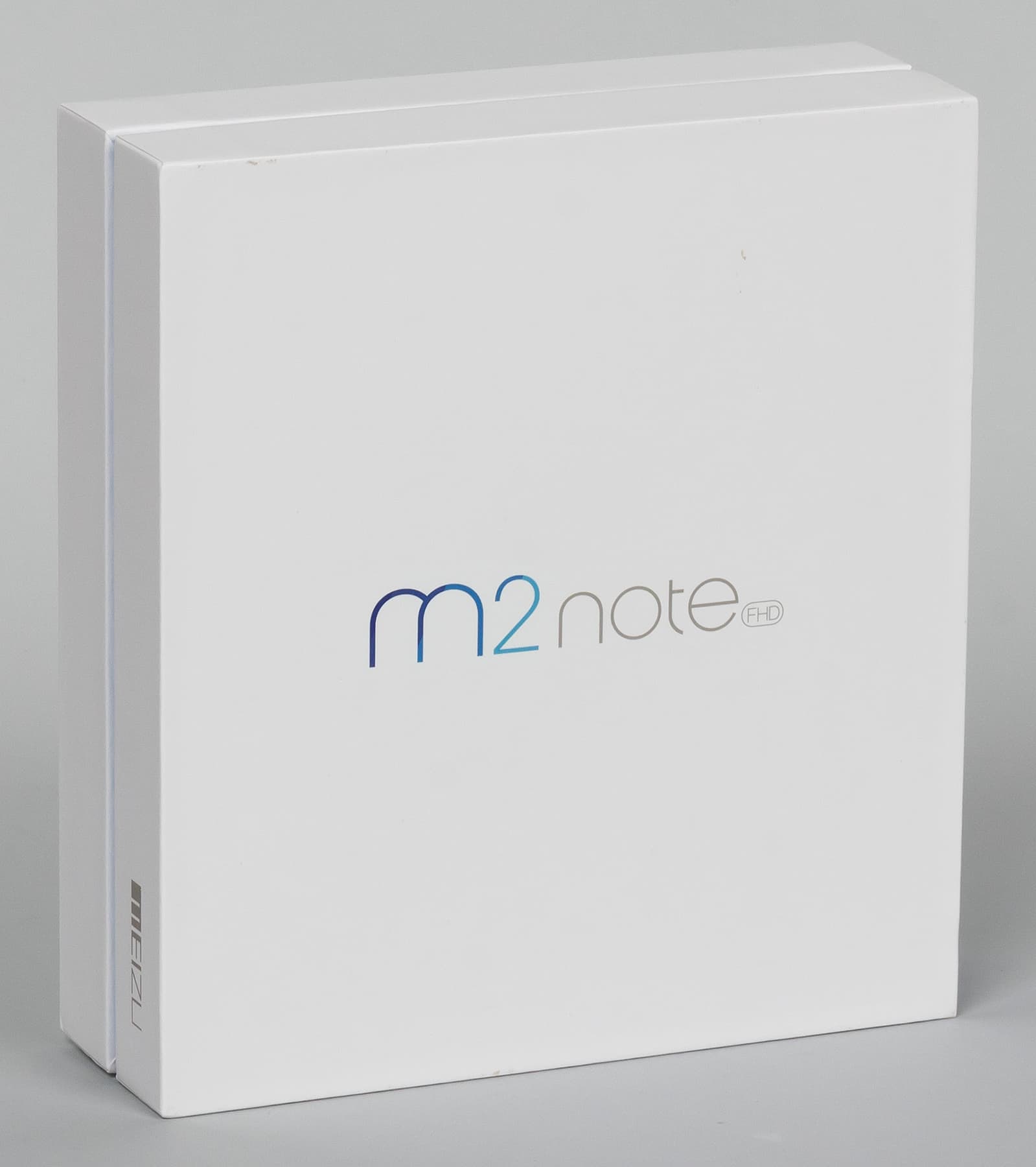 Meizu M2 Note поступает в продажу в точно такой же плоской и квадратной коробке из твердого белоснежного картона, как и его предшественник, только внутренняя часть приобрела иной цвет. Коробка выдержана в стиле минимализма: снаружи на белоснежный фон нанесена лишь пара логотипов. Привычной внутренней шкатулки, выполненной в виде книжки, младшая модель не получила.