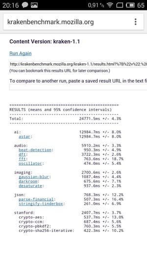 Что касается бенчмарков для оценки скорости движка javascript, то стоит всегда делать скидку на то, что в них результаты существенно зависят от браузера, в котором запускаются, так что сравнение может быть истинно корректным только на одинаковых ОС и браузерах, а такая возможность имеется при тестировании не всегда. В случае с ОС Android мы всегда стараемся использовать Google Chrome.