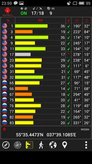 Навигационный модуль работает и с GPS (с A-GPS), и с отечественной Глонасс. К работе модуля навигации нареканий нет, первые спутники при холодном старте обнаруживаются в течение первых десятков секунд. Среди датчиков смартфона имеется датчик магнитного поля, на основе которого работает цифровой компас навигационных программ.