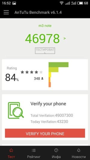 | AnTuTu (больше — лучше) | 46978 (v6.x) | 52598 (v6.x) | 75170 (v6.x) | 37449 (v6.x) | 47153 (v6.x) |
