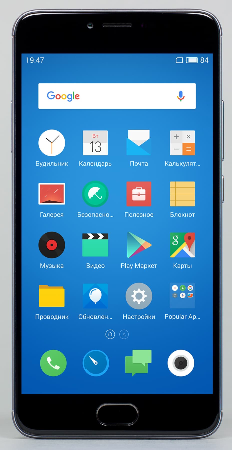 Телефонное приложение поддерживает Smart Dial, то есть во время набора телефонного номера сразу осуществляется и поиск по первым буквам в контактах, имеется и поддержка непрерывного ввода типа Swype. В аппарате предустановлена альтернативная клавиатура стороннего разработчика TouchPal с широким набором настроек и возможностей. Для удобства работы с крупным экраном с помощью одной руки стандартно для смартфонов Meizu предусмотрена функция Smart Touch, которая позволяет сдвинуть весь рабочий экран наполовину вниз, ближе к пальцам.