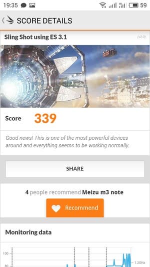 Экран у Meizu M3 Note немного темнее (яркость по фотографиям 110 против 113 у Nexus 7). Двоения отраженных объектов в экране Meizu M3 Note практически нет, это свидетельствует о том, что между слоями экрана (конкретнее между внешним стеклом и поверхностью ЖК-матрицы) нет воздушного промежутка (экран типа OGS — One Glass Solution). За счет меньшего числа границ (типа стекло/воздух) с сильно различающимися коэффициентами преломления такие экраны лучше смотрятся в условиях сильной внешней засветки, но вот их ремонт в случае потрескавшегося внешнего стекла обходится гораздо дороже, так как менять приходится экран целиком. На внешней поверхности экрана есть специальное олеофобное (жироотталкивающее) покрытие (эффективное, даже лучше, чем у Nexus 7), поэтому следы от пальцев удаляются существенно легче, а появляются с меньшей скоростью, чем в случае обычного стекла.