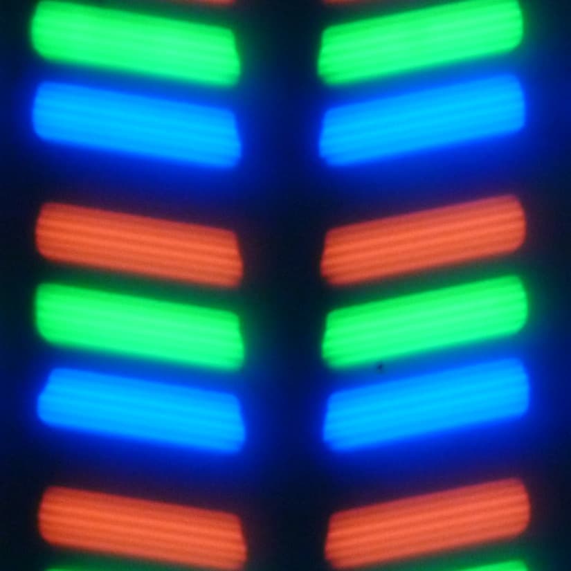 В данном смартфоне используется матрица типа IPS. Микрофотографии демонстрируют типичную для IPS структуру субпикселей:
