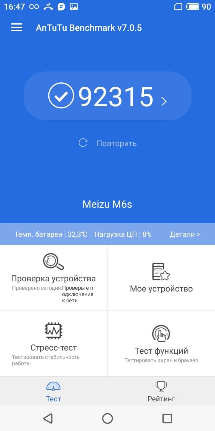 | AnTuTu (v7.x) (больше — лучше) | 92315 | 77402 | 54570 | 46540 | 87589 |