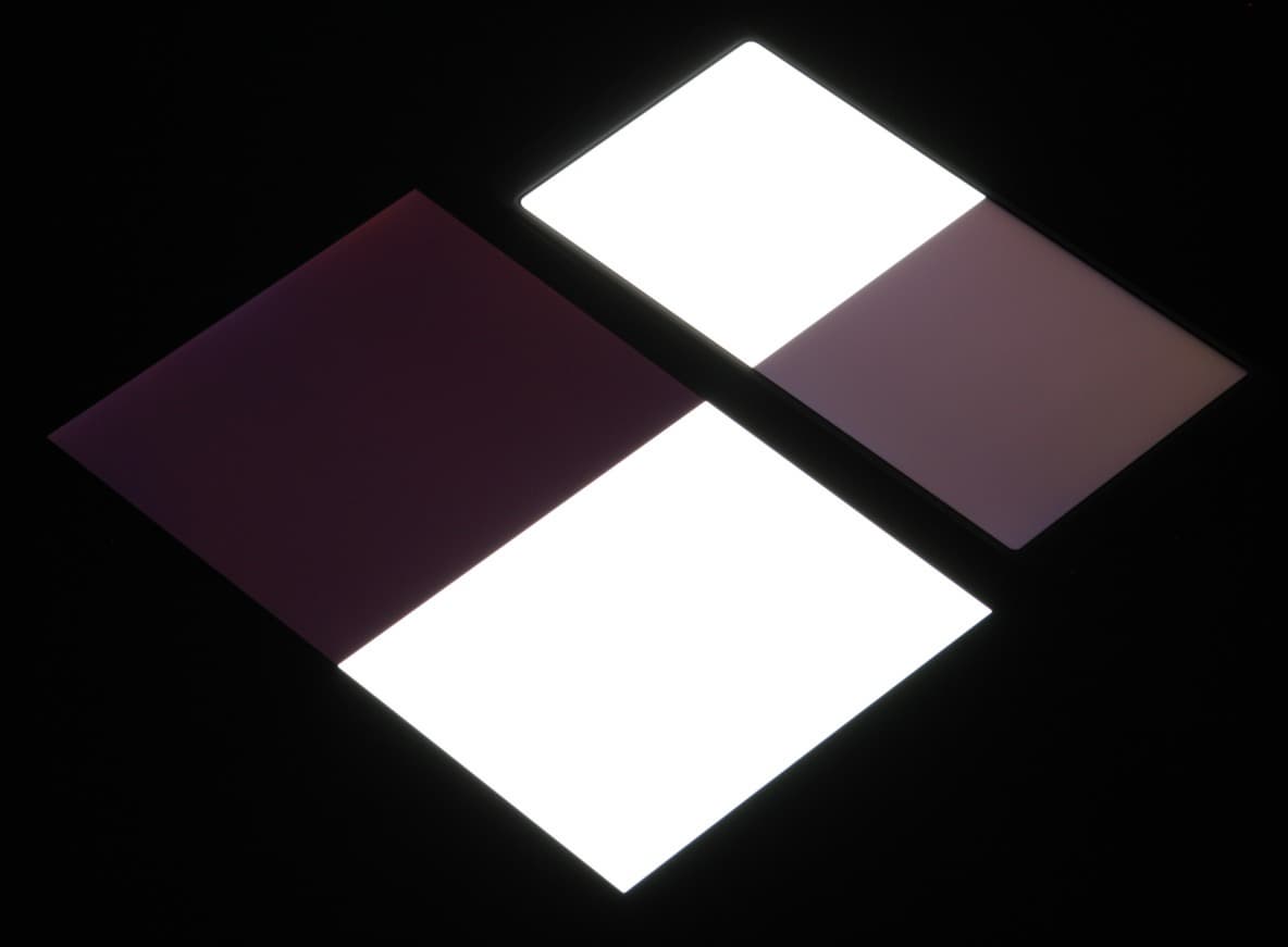 Яркость под углом у экранов уменьшилась (как минимум в 4 раза, исходя из разницы в выдержке), но в случае Meizu M6s падение яркости чуть меньше. Черное поле при отклонении по диагонали высветляется сильно и приобретает красноватый оттенок. Фотографии ниже это демонстрируют (яркость белых участков в перпендикулярном плоскости экранов направлении одинаковая!):