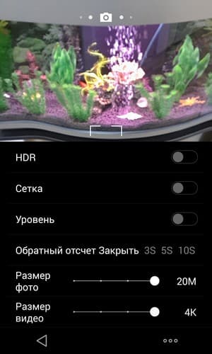 Меню управления съемкой имеет несколько режимов: помимо автоматического и ручного пользователю предоставляется возможность дополнительно задействовать панорамный, портретный, ночной режимы, а также более специфические, такие как ручная смена фокуса, макросъемка и даже специальный встроенный режим распознавания штрих-кодов. Для видео предусмотрен режим замедленной съемки. Любопытен режим «Фокус», после съемки в котором, уже на готовом снимке, можно прикосновением к различным участкам менять фокус, поочередно фокусируясь на объектах, находившихся во время съемки на разном расстоянии от камеры.