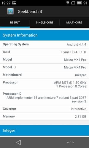 - Операционная система Android 4.4.4, Flyme OS 4.1