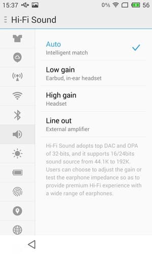 В настройках звука имеется пункт «Hi-Fi Sound», где пользователь может настроить уровень усиления сигнала. Мы рекомендуем остановиться на одном из трех нижних вариантов в списке, поскольку в автоматическом режиме смартфон адаптируется слишком долго.