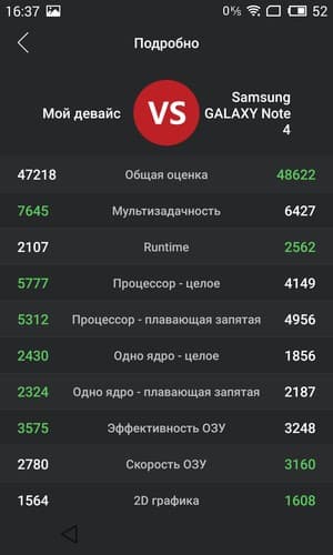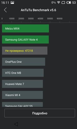 Платформа Meizu MX4 Pro обладает высочайшей производительностью, однако отрыва от модели MX4 этот смартфон не продемонстрировал. По сравнению с «эталонным» Samsung Galaxy Note 4, являющимся наиболее известным смартфоном в данной категории, результаты тоже приблизительно равные, заметного превосходства ни у одной из моделей нет.