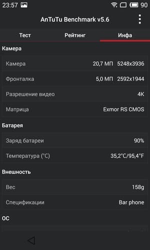 - Камера 20,7 Мп, Sony IMX220 Exmor RS, f/2,2, автофокус, видео 4K
