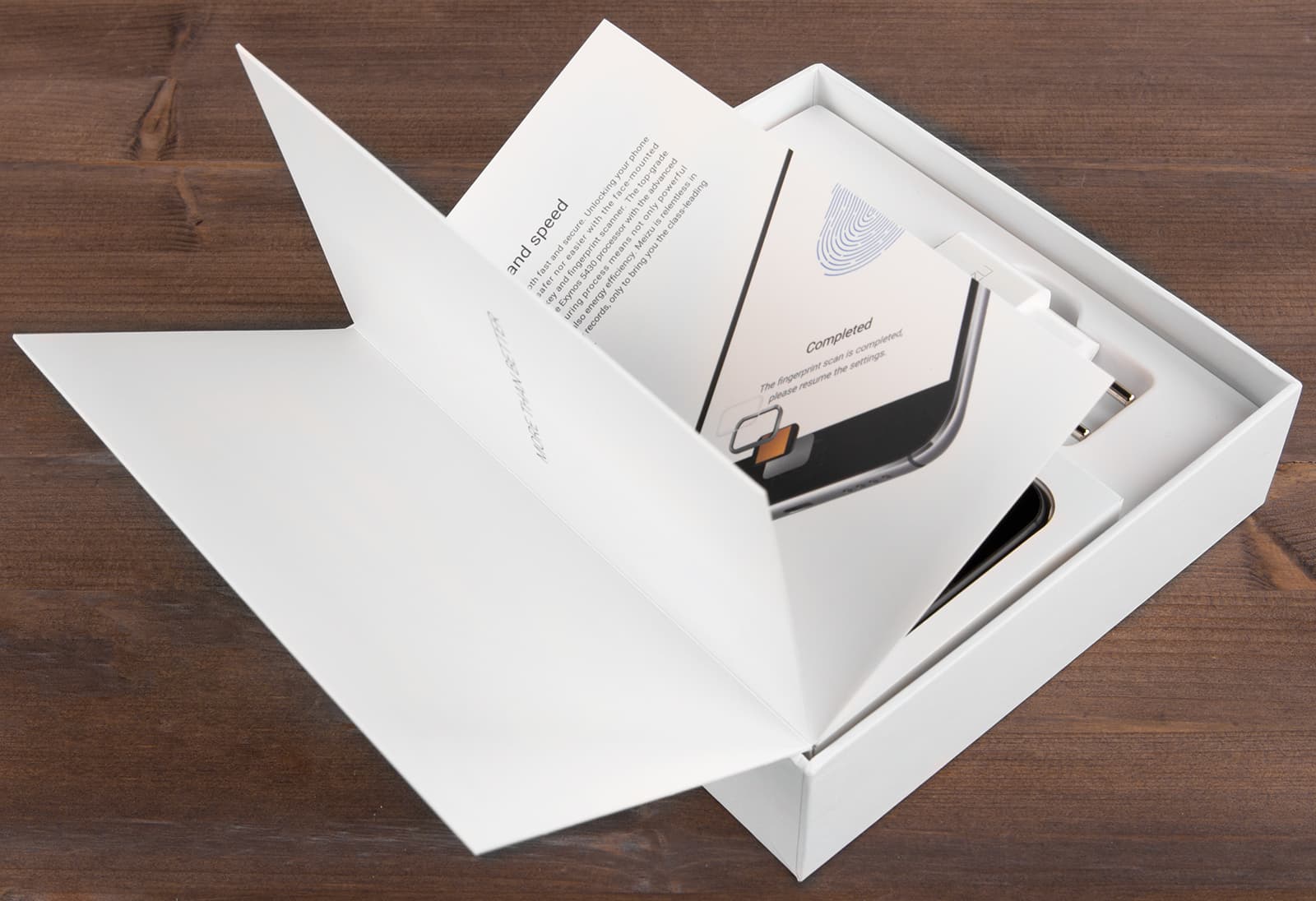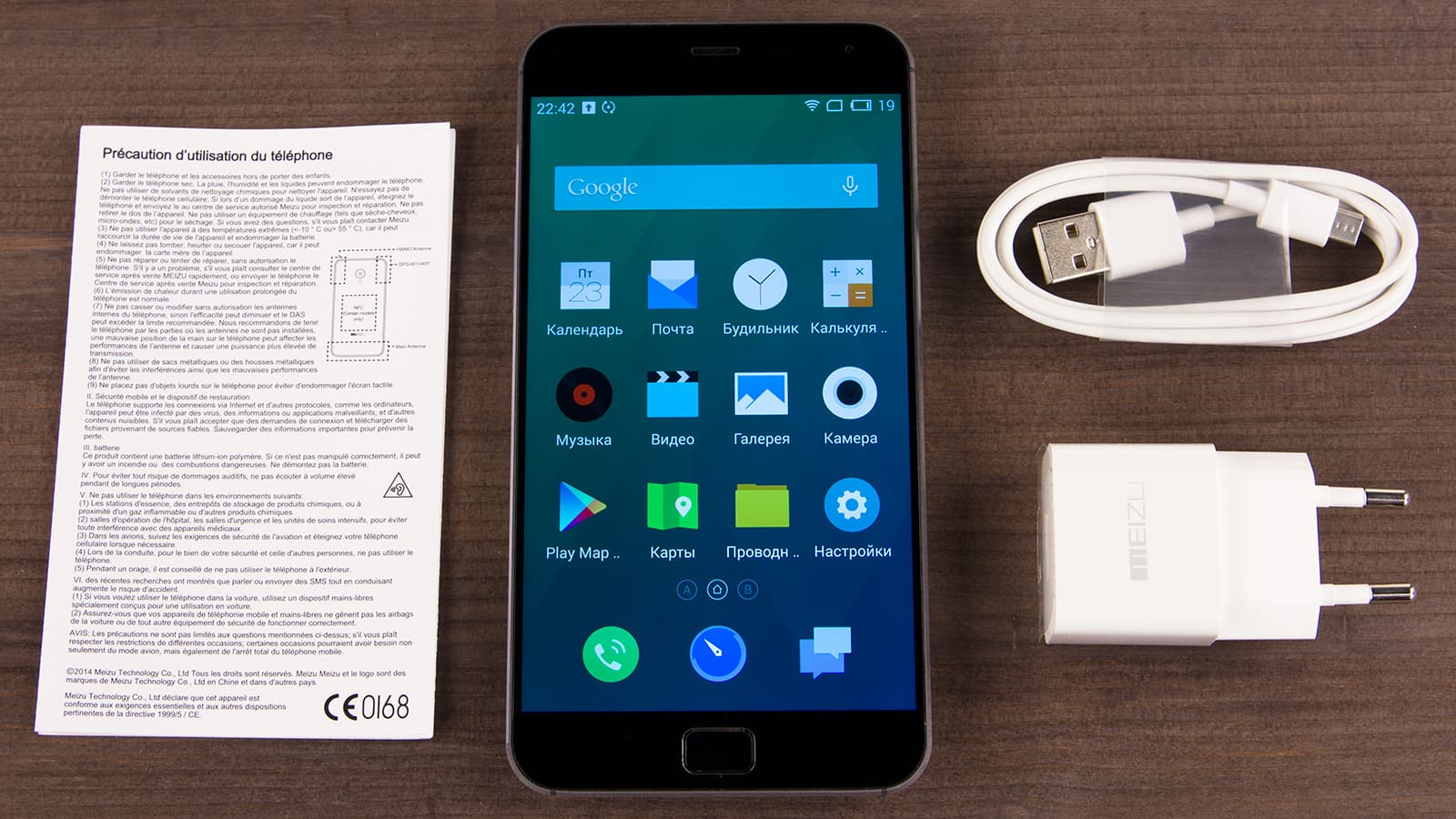 Комплект аксессуаров небогат: в коробке находятся лишь миниатюрное зарядное устройство с выходным током 2 А и соединительный кабель Micro-USB, больше ничего. Так же, как и в случае с оригинальной моделью MX4, наушников в комплекте не оказалось: хотя отсек для их размещения в коробке предусмотрен, он пуст.
