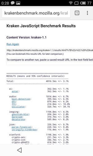 Что касается бенчмарков для оценки скорости движка javascript, то стоит всегда делать скидку на то, что в них результаты существенно зависят от браузера, в котором запускаются, так что сравнение может быть истинно корректным только на одинаковых ОС и браузерах, а такая возможность имеется при тестировании не всегда. В случае с ОС Android мы всегда стараемся использовать Google Chrome.