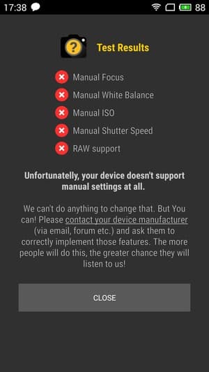 Меню управления камерой совершенно не изменилось со времен предыдущих моделей серии. Имеется несколько режимов: помимо автоматического и ручного пользователю предоставляется возможность дополнительно задействовать панорамный, портретный режимы, а также более специфические, такие как ручная смена фокуса, макросъемка и даже специальный встроенный режим распознавания штрих-кодов. Имеется режим «Фокус», позволяющий на сделанном в этом режиме снимке прикосновением к различным участкам поочередно фокусироваться на объектах, находившихся во время съемки на разном расстоянии от камеры. Смена режимов съемки происходит с помощью пролистывания горизонтальным жестом. Если сравнивать с флагманским MX5, то здесь исчез ночной режим, в той модели он был среди настроек. В ручном режиме также имеется возможность выставлять значения выдержки, ISO и пр. Сторонним приложениям управление этими настройками через Camera2 API недоступно, нет возможности и сохранять снимки в RAW.