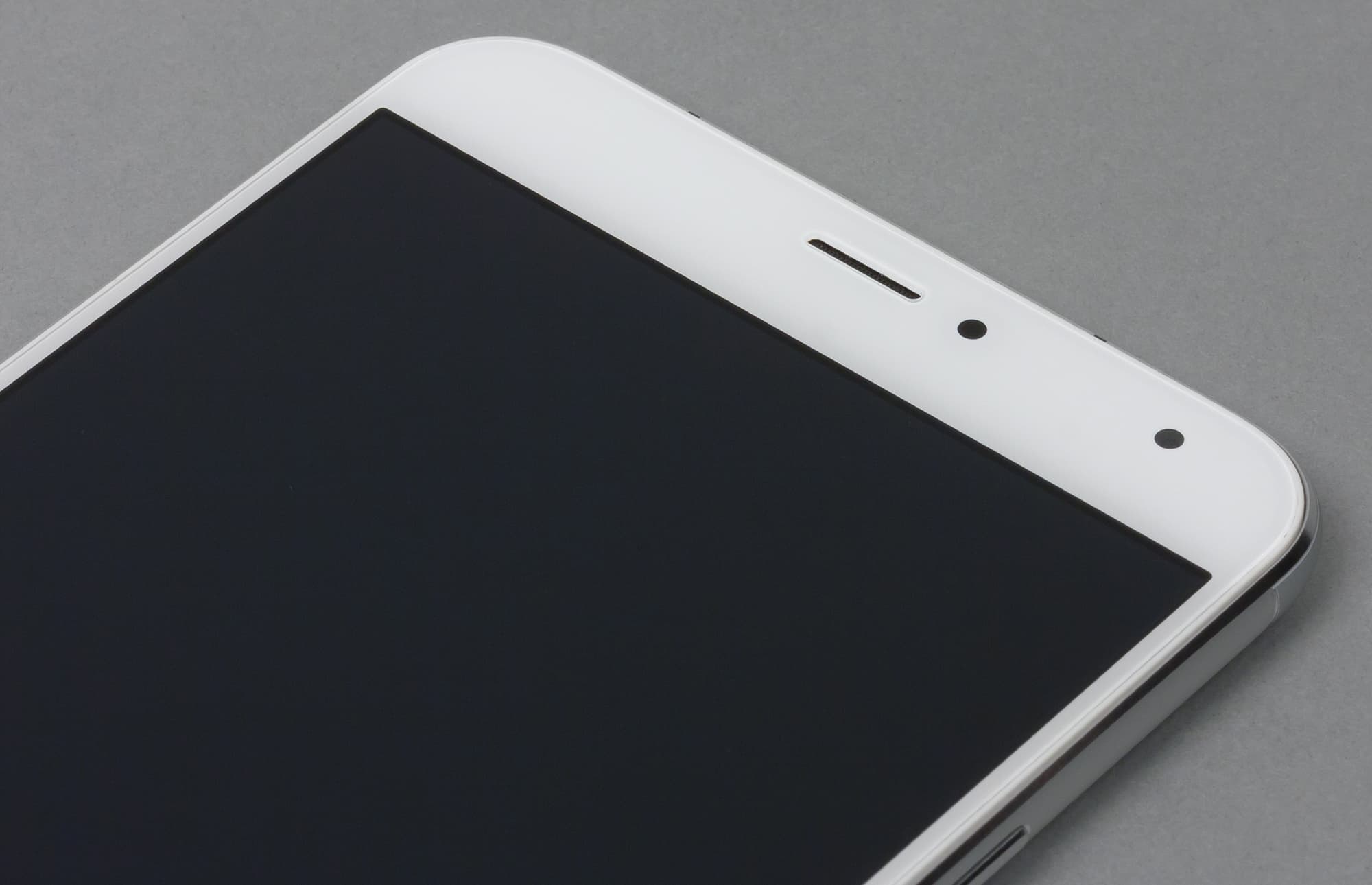 Экран характеризуется великолепными углами обзора. Правда, белый цвет при отклонении даже на небольшие углы приобретает легкий сине-зеленый оттенок, а под некоторыми углами чуть-чуть розовеет, но черный цвет остается черным под любыми углами. Он настолько черный, что параметр контрастности в данном случае просто неприменим. При перпендикулярном взгляде равномерность белого поля хорошая. Для сравнения приведем фотографии, на которых на экраны Meizu Pro 5 и второго участника сравнения выведены одинаковые изображения, при этом яркость экранов изначально установлена примерно на 200 кд/м², а цветовой баланс на фотоаппарате принудительно переключен на 6500 К. Перпендикулярно к экранам белое поле: