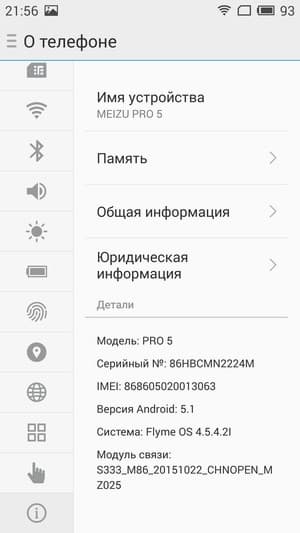 Основные характеристики Meizu Pro 5 (модель M576H)