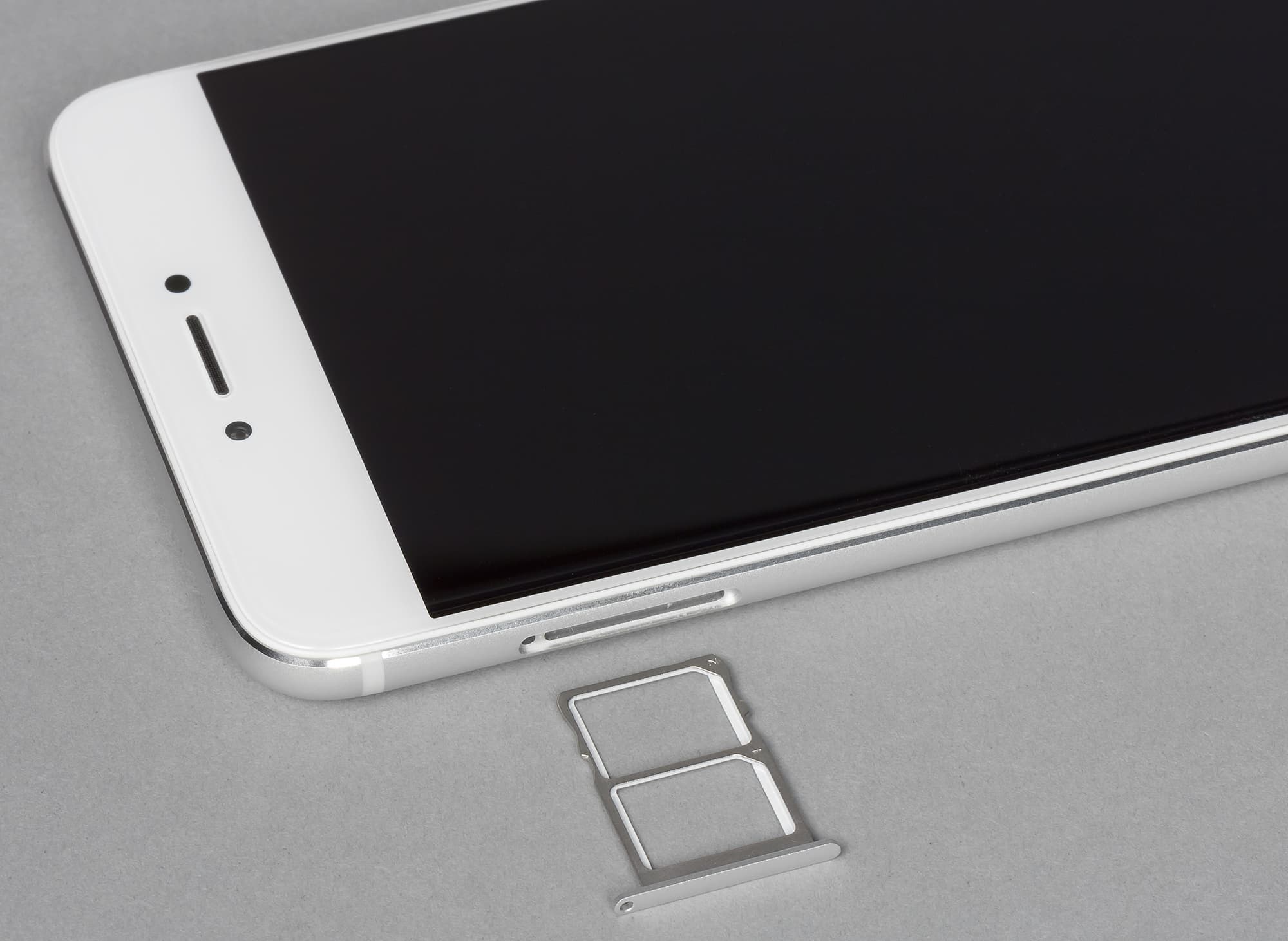 Карточки вставляются в один единственный боковой слот. Он здесь, как и у Xiaomi Mi 5, не гибридный, то есть установка карты памяти не допускается, в него можно установить только две карточки формата Nano-SIM. Слоты по своим возможностям равнозначны, поддерживается горячая замена карт.