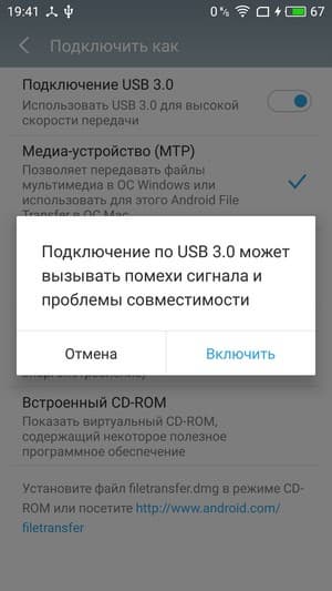 Смартфон поддерживает технологию быстрой зарядки mCharge 3.0. В комплекте идет сетевой адаптер с варьируемым напряжением (5/9/12 В, 2 А). Скорость зарядки потрясающая: от собственного ЗУ смартфон полностью заряжается в течение всего лишь одного часа током 1,85 А при напряжении 9 В.